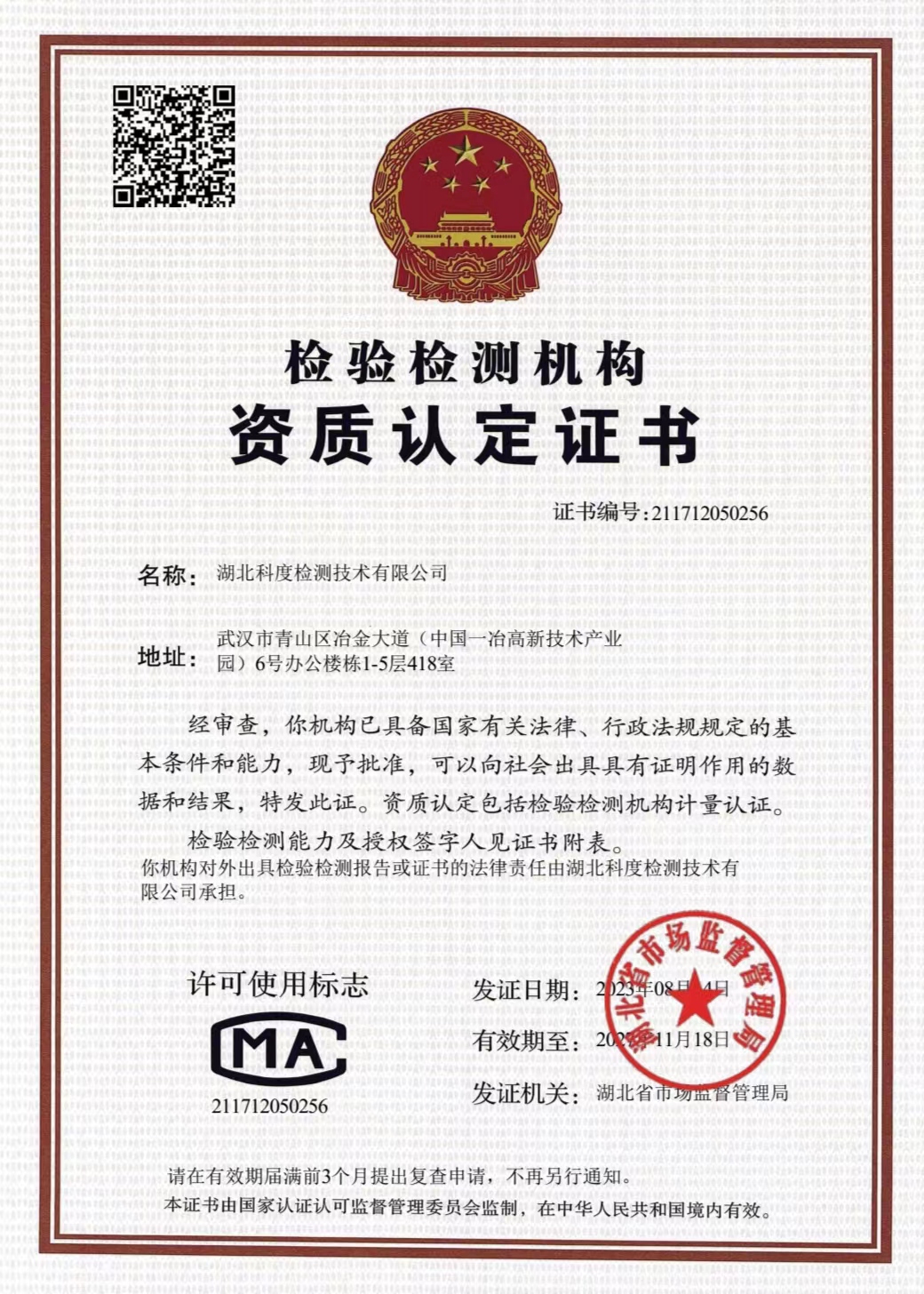湖北科度檢測技術有限公司是一家專業(yè)從事環(huán)境類及相關領域檢測的第三方檢測機構(gòu),公司已通過湖北省市場監(jiān)督管理局CMA計量認證,可以面向社會出具權(quán)威CMA檢測報告。 我公司實驗室嚴格按照國家標準建設,擁有一大批國內(nèi)外先進儀器設備及現(xiàn)代化配套設施,并有經(jīng)驗豐富的中高級專業(yè)技術人員和嚴格的實驗室質(zhì)量保證體系為項目運作提供強力支撐。 作為第三方檢測機構(gòu),公司始終以高度的社會責任感經(jīng)營企業(yè),以“公正、嚴謹、高效”為宗旨,依托專業(yè)的技術實力為客戶提供專業(yè)優(yōu)質(zhì)檢測服務,受到政府、企業(yè)和社會各界的廣泛關注和認可。